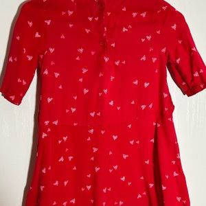 Old Navy branded red heart patterned dress, size 2T. Front features a faux wrap style front with buttons at back. 100% Rayon/Viscose. Perfect for upcoming Valentine’s Day!
