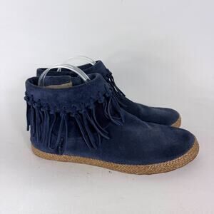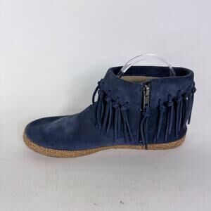 UGG Shenendoah Fringe Moccasin Ankle Bootie Womens 8 Blue Suede Side Zip Comfort