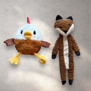 BARK NWOT 2‑Piece Dog Toy Set Farm Rooster & Fox Plush Crinkle Squeak