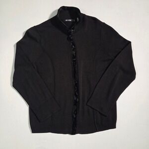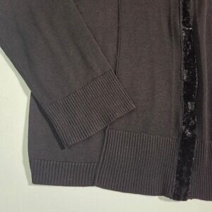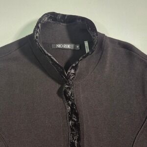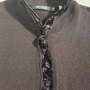 NIC+ZOE Black Velvet Trim High Neck Knit Cardigan Sweater Women's M