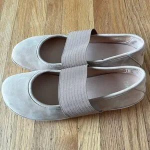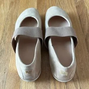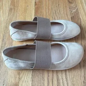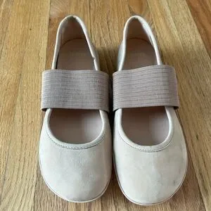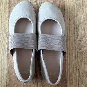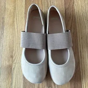 Stylish Camper flats. Beige color with elastic strap. Comfortable and versatile.