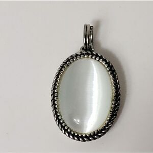 WHITE CAT"S EYE In Silver-tone Setting PENDANT ONLY