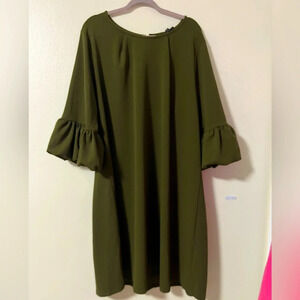 Nina Leonard NWT Puff Bell Sleeve knee length dress. Olive green. Size 3x. Bought new at Nordstrom has a bit of stretch Smoke free home