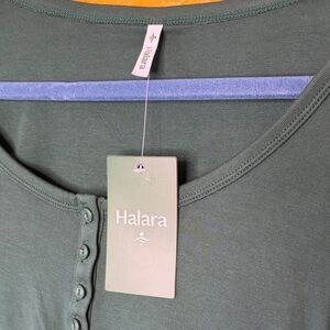 HALARA Ribbed Henley Neck Dark Green Long Sleeve Slim Casual Top or Tee NWT Sz S