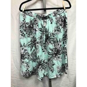 So Rad Tropical Floral Print Midi Skirt Teal Black White Elastic Waist XL