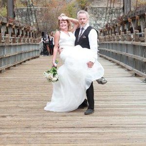 We had a fairy tale wedding on a beautiful bridge, on a gorgeous warm fall day. The dress carries a supreme aura of love and happiness.