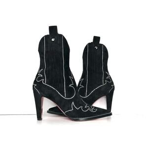 Christian Louboutin Santigag Strass 85 Black Suede Western Style Low Boots 38