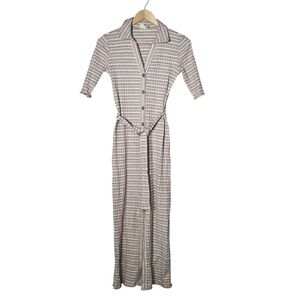 Nation LDT Enise cream blue striped knit button-down belted maxi dress XS B196