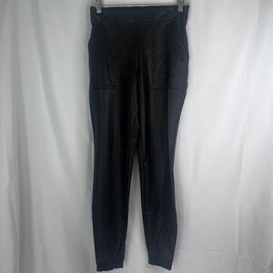 Spanx Noir Faux Leather Like Black Pull On Joggers Stretchy Waist Size Small