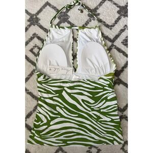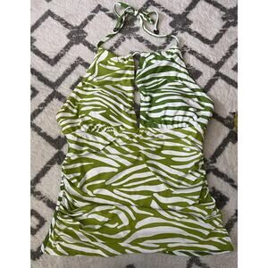 ANNE COLE Green Animal Print Halter Key Hole Tankini Swimsuit Top Sz L NWT