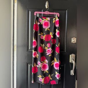 VTG La Belle Fashion Floral Roses Sheer Midi Skirt Size S/M
