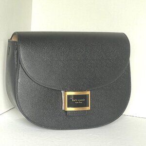 Kate Spade Katy Crossbody Black Leather Saddle Bag Medium Shoulder Bag