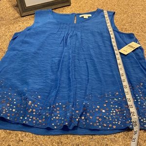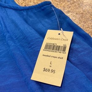 NWT Coldwater Creek Blue Sleeveless Top With Bling Large 14