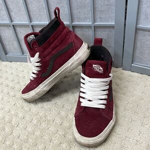 Step up your style with Vans men's high-top sneakers in a striking red. Perfect for casual outings, these shoes offer both comfort and a bold look.