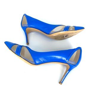 Tags: designer shoes, unique, mesh, leather, pumps, heels, leather, pointed toe, blue, Ferragamo