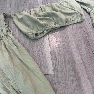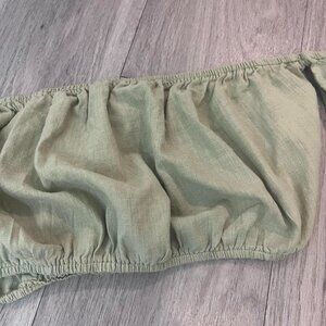 Green Linen Look Bardot Puff Sleeve Beach Top SZ 10 USA UK 14