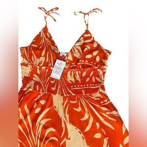 Patrons of Peace Mango and Cream Jumpsuit pool at a try