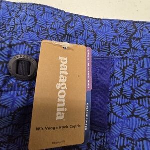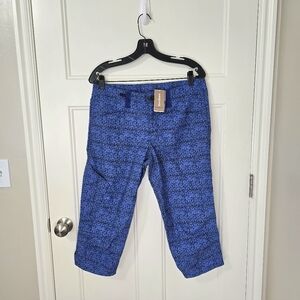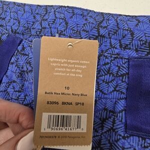 Patagonia Women's Venga Rock Capris Outdoor Blue Hex Batik Cotton Pants Size 10