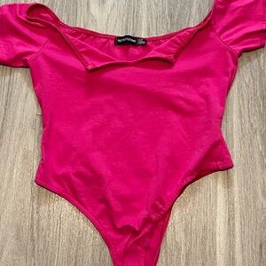 Prettylittlething Fuchsia Jersey V Front Short Sleeve Bodysuit size 8