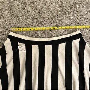 This XL black and white striped A-line skirt from Forever 21+ is perfect if you are looking for a fun and chic addition to your wardrobe. Made from a comfortable cotton blend knit fabric, the skirt features an elastic waist for a flattering fit. The knee-length full design adds a touch of flirty style, making it versatile for both casual and dressy occasions. This fun flirty skirt is a must have! Retail $39 new with tags.