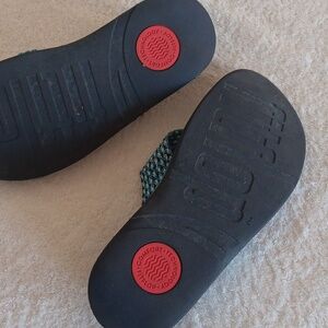 In great pre loved condition, Fitflop comfort Thong Sandals in size 8. Blue cushioned footbed, multicolored straps, Arch support, thick heel for comfort, Lightweight design, Fitflop logo on sides and heel.