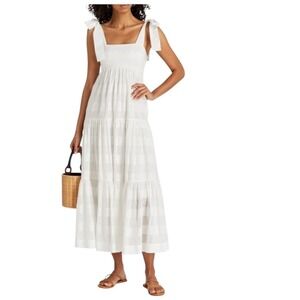 Keywords: Zimmermann, maxi dress, white dress, tiered dress, sleeveless dress, tie strap dress, summer dress, womens dress, designer dress, bohemian dress, cotton dress, size 3