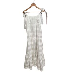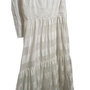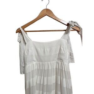 Zimmermann Women's Rosa striped midi Dress size 3 tie shoulder cream cotton