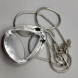 Cats Eye in Pink Pendant on a 16 inch Silvertone snake chain with a 2 inch extender.