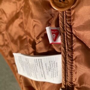Stylish quilted puffer jacket. Features button closure and front pockets. Perfect for layering.