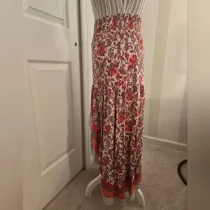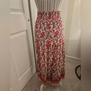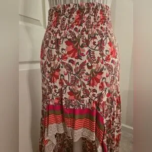 Floral high-low skirt with vibrant red and pink hues. Elastic waistband for comfort. Perfect for casual outings. Excellent condition never worn and super cute!!