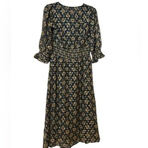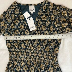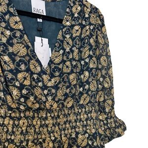NWT RAGA Dress Midi Smocked Waist Metallic Gold Navy Current A-line Cocktail