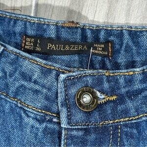 NWT PAUL & ZERA ALLSAINTS High Waist Raw Hem Frayed Floral Embroidered Jeans L