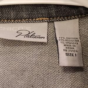 Chico's Platinum Jacket Dark Gray Denim Women Size 1 (Medium) Pleated Front