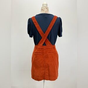 Adorable rust brown corduroy Old School Love mini dress from Free People, size 4, features an open jumper style and button front.