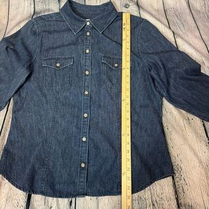 Talbots Dark Wash Blue Denim Button Down Shirt 100% Cotton Long Sleeve Sz Large