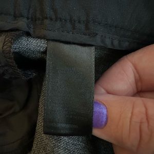 Additional features: low rise. heathered grey pant with black contrast waistband. Hip and back pockets with belt loops