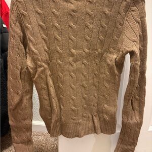 size xs. one minor hole, see photo. not noticeable with an undershirt. love this sweater, prettiest detailing!