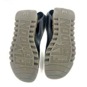 Fly London Tram Black Leather Wedge Sandals Womens 41 US 10-10.5