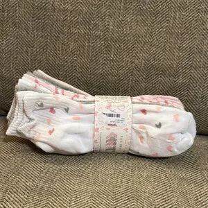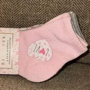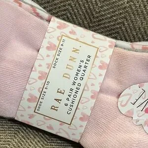 NWT Rae Dunn 6 Pair WMN’s Cushion Quarter Pink,Gray, & White Socks Valentine’s