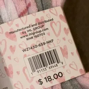 Cozy Rae Dunn socks. Features pink and gray colors. Perfect for casual wear.