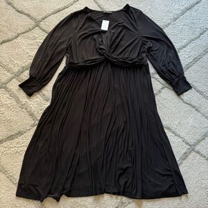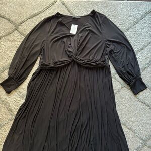 Eloquii Knot Front Pleated black midi Dress