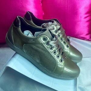 (A2) Geox Patent Velvet Lace Women's Silver Fashion Comfort Sneakers Size 9