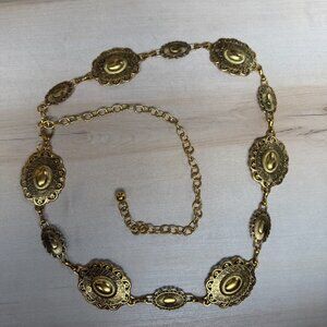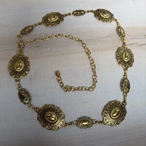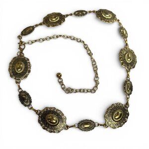 Yellow Gold Tone Concho Medallion Metal Chain Link Belt 30" - 43" western