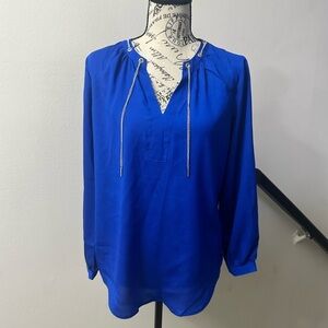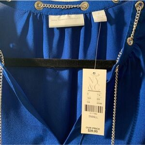 New York and Company Small Royal Blue Blouse with Silver Chain Drawstring Neckline. New with tag.