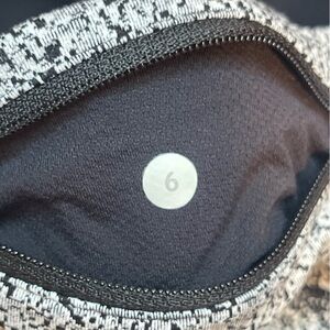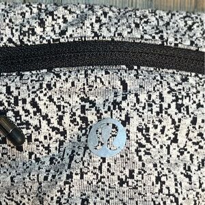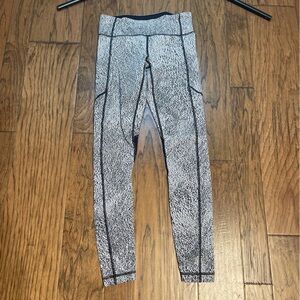 Lululemon Pace Rival Crop leggings in Power Luxtreme fabric with a Spray Jacquard White Black pattern.