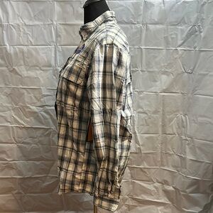 Classic plaid shirt by Field & Stream. Features a stylish design perfect for casual outings. Sweat wicking material. UV protection material.