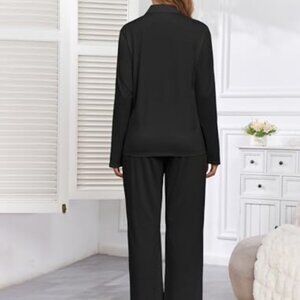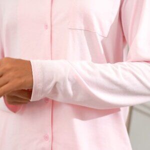 Cotton Blend Pajama Set Long Sleeve Button Down Lounge Sleepwear Classic