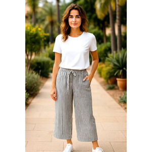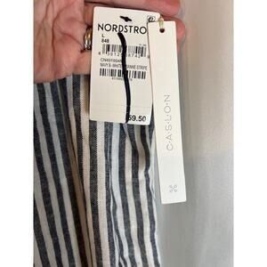 Nordstrom Caslon Women's Flax Navy Cove Stripe Pants Large Beach Linen summer