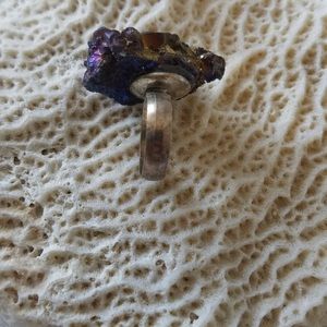 Beautiful Handcrafted Ring made of some sort of Crystal. Resembles Laboradite, with purple, blue and gold hues. Looks like Sterling — unmarked, but it tarnishes like silver and then polishes up great with silver polish. I love this and the stone is so big and cool, but it’s too small for me. According to my ring sizer it’s size 5.75. Sorry but I have to be firm on the price as I’m losing money on this at this price after the Poshmark fee...