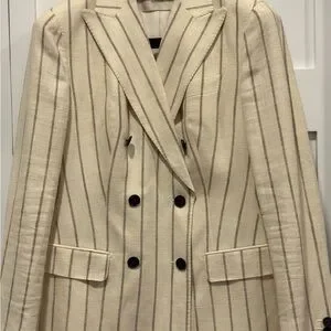 Suistudio cream colored pinstriped double-breasted blazer